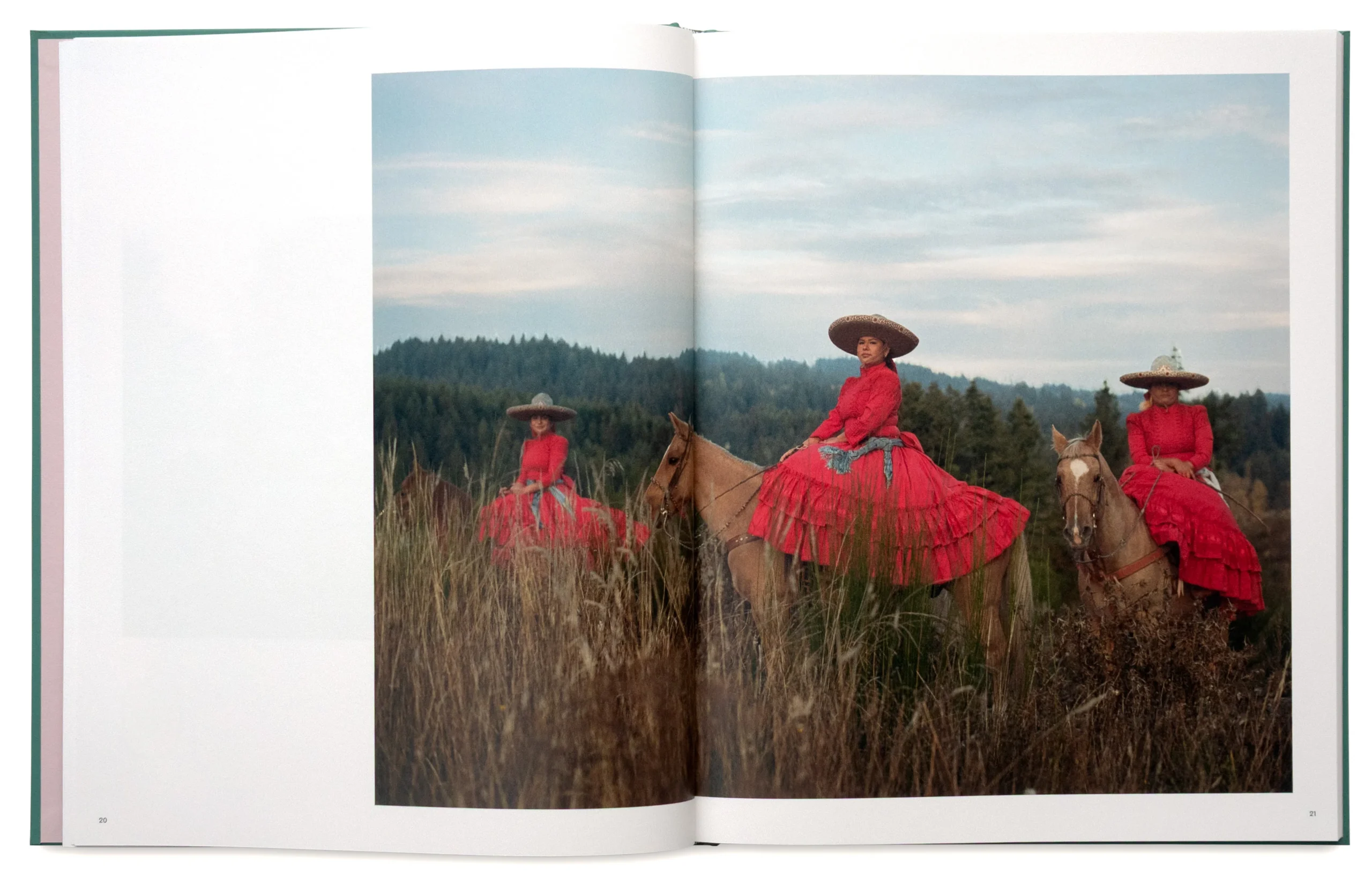 In the sport of escaramuza, all-female precision horse ridings teams execute daring manoeuvres whilst riding sidesaddle and dressed in traditional attire. Constance Jaeggi travelled across the US to document this Mexican tradition by photographing participants and recording their stories. As an outsider to the culture she invited Mexican-American poets Ire’ne Lara Silva and Angelina Sàenz to create prose in response to her work. In the forthcoming book Escaramuza, their poetry is displayed alongside Jaeggi’s photographs to collectively impart the layered and complex narratives of the escaramuza tradition.